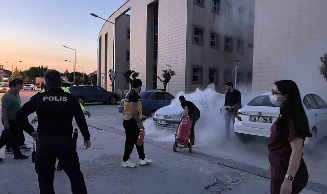 Olay, saat 20.30 sıralarında İnegöl Devlet Hastanesi Acil Servis otoparkında meydana geldi. Park halindeki 16 AHS 595 plakalı otomobil aniden alev aldı. O sırada Acil Servis'te bulunan İnegöl Emniyet Müdürlüğü Trafik Büro Amirliği ekipleri ve ambulans görevlileri, yangın tüpleri ile yanan araca müdahale ettiler. Ekiplerin müdahalesiyle yangın büyümeden söndürüldü. Olay yerine gelen itfaiye ekipleri, söndürülen aracı kontrol etti. Yangını gören vatandaşlar ise kısa süreli panik yaşadı. Yangında aracın motor kısmında hasar meydana geldi.