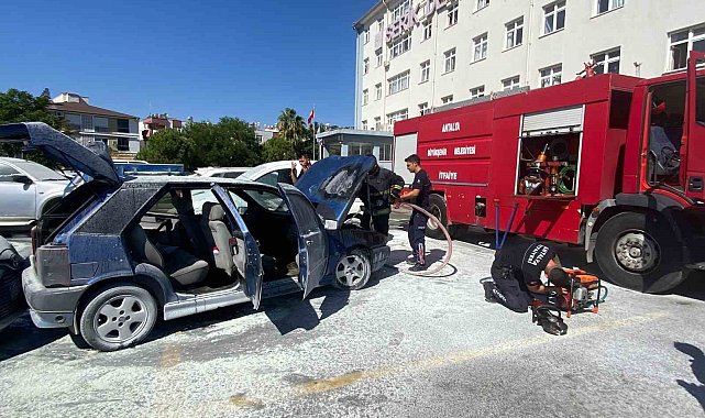 Merkez Mahallesi, devlet hastanesi otoparkında meydana gelen olayda park halindeki sürücüsü öğrenilemeyen 48 ADR 462 plakalı otomobil, henüz belirlenemeyen bir nedenden dolayı alev aldı. Dumanları fark eden hastane çalışanları, yangın tüpleriyle alevlere müdahale etti ve durumu hemen itfaiye ekiplerine haber verdi.