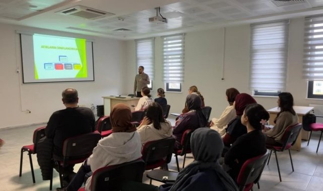 Erfelek İlçe Devlet Hastanesi Çevre Sağlığı birimi personeli tarafından gerçekleştirilen hizmet içi eğitimde, hastane çalışanlarına atıkların doğru şekilde ayrıştırılması, toplanması, taşınması ve bertaraf süreçleri hakkında bilgilendirme yapıldı. Eğitim kapsamında ayrıca, tıbbi atıkların yönetimi, çevre ve insan sağlığının korunmasına yönelik dikkat edilmesi gereken hususlar ile atık yönetiminde personelin sorumlulukları ele alındı. Hastanenin konferans salonunda düzenlenen eğitimde, tıbbi ve evsel atıkların kaynağında doğru ayrıştırılmasının hayati önem taşıdığı vurgulandı.
