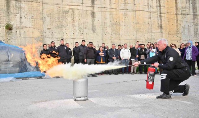 Hastane personeline uygulamalı yangın eğitimi