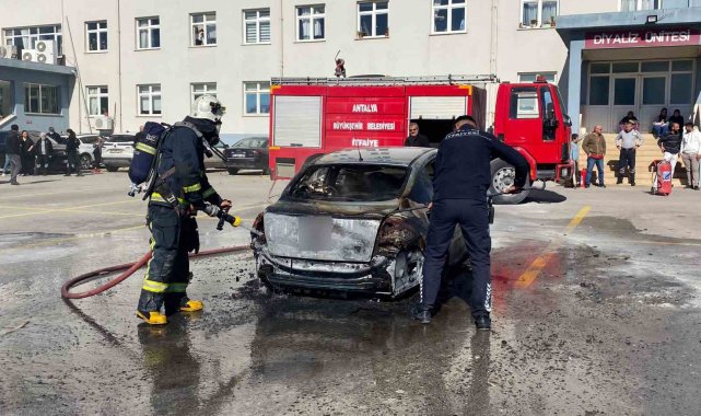 Yangın bugün saat 12.00 sıralarında Serik Devlet hastanesi açık otoparkında meyana geldi. Otoparkta park halinde bulunan hastane çalışanı Hasan Ali Kahya'ya ait 07 DP 343 plakalı otomobilde bilinmeyen bir nedenle yangın çıktı. Yangın hastanede büyük paniğe neden oldu. Otoparkta araçları bulunan kişiler yanan aracın etrafını boşaltırken, polis aracın bulunduğu alanda güvenlik önlemi aldı.