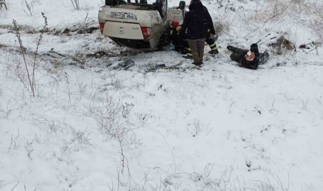Hastane randevusuna giderken karlı yolda şarampole devrildiler: 3 yaralı