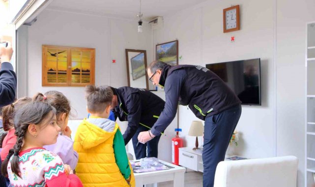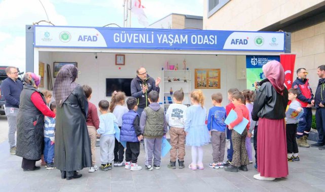 Özellikle Kocaeli Büyükşehir Belediyesinin organizasyonuyla kurulan ve afet anındaki doğru uygulamaların yerinde deneyimlendiği "Güvenli Yaşam Odası", minik öğrenciler ve katılımcılardan yoğun ilgi gördü.