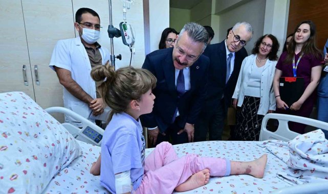 Ziyaretiyle ilgili açıklamada bulunana Vali Aksoy, "Bugün 2024-2025 eğitim-öğretim yılının son günü, karne günü ve okullarımızda bütün karnelerimizi çocuklarımıza verdik, tatile çıkmalarını sağladık. Ancak sağlık nedenleri gerekçesiyle okulda olamayan, hastanede olan çocuklarımız vardı. Osmangazi Üniversitesi Tıp Fakültesi'nde yatmakta olan, tedavi gören öğrencilerimize karnelerini biz getirdik. Yaklaşık olarak 12 öğrencimize karnelerini verdik. Onların bu karne heyecanından mahrum kalmamaları adına arkadaşlarımızla birlikte hem onları ziyaret ettik hem de karne heyecanlarını paylaştık. Kendilerine geçmiş olsun diyorum. Osmangazi Üniversitemizin değerli hocalarına teşekkür ediyoruz, onların bir an önce sağlığına kavuşması için yoğun gayret içerisinde çalışmalarını sürdürüyorlar. Sağlıklı bir toplum için bütün kurum ve kuruluşlarımızla işbirliği içerisinde çalışmalarımıza devam edeceğiz" dedi.