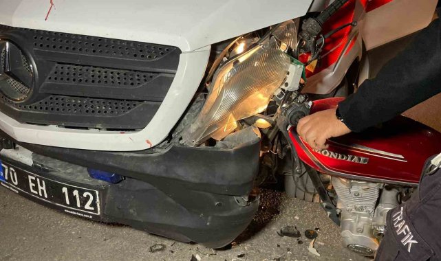 Kaza, akşam saat 19.00 sıralarında İmaret Mahallesi Behçet Kemal Çağlar Caddesi üzerinde bulunan kavşakta meydana geldi. Edinilen bilgiye göre, kazada yaralanan bir şahsı hastaneye götürdüğü öğrenilen A.T. idaresindeki 70 EH 112 plakalı ambulans, kavşakta U.P.'nin kullandığı 70 AL 728 plakalı motosikletle çarpıştı. Kazada motosiklet ambulansın ön tamponu ile teker arasına ok gibi saplanırken, yola savrulan motosiklet sürücüsü yaralandı. Yaşanan kazada yaralanan motosiklet sürücüsü ile ambulansta bulunan diğer yaralı çağrılan başka ambulanslarla kaldırıldıkları Karaman Eğitim ve Araştırma Hastanesi'nde tedavi altına alındı. Ambulansa ok gibi saplanan motosiklet ise polis ekiplerince saplandığı yerden güçlükle çıkarılarak otoparka çekildi.