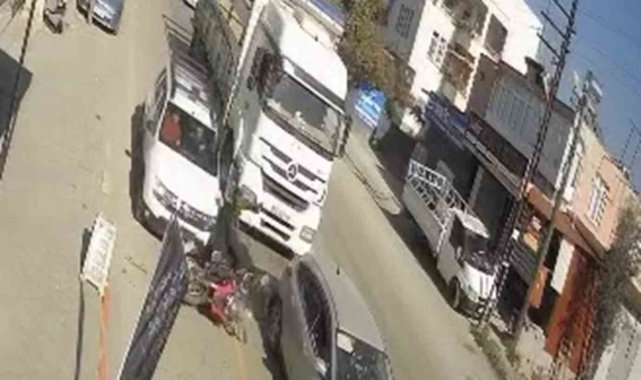Hatay'da karşı şeride geçen motosikletin, emniyet şeridini kullanan ciple çarpıştığı kaza güvenlik kamerasına yansıdı.