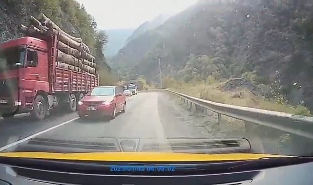 Karabük-Yenice Karayolu'nda hatalı sollama yapan bir aracın, karşı yönden gelen otomobille çarpışma tehlikesi yaşadığı anlar araç kamerasına yansıdı. Edinilen bilgiye göre, Karabük istikametine istikametine seyir halinde olan bir otomobil, önündeki uzun araçlara rağmen hatalı sollama yaptı. Hatalı sollama yaparken hızı yavaşlayan otomobil, karşıdan istikametten gelen araçla çarpışmaktan son anda kurtuldu. O anlar araç içi kamerasına saniye saniye yansıdı. Görüntülerde Yenice istikametine seyir halinde olan aracın, fren yaparak durduğu ve bir süre sonra yoluma devam ettiği görülüyor.