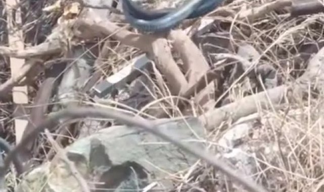 Hatay'da çiftleşen yılanlar kameraya yakalandı