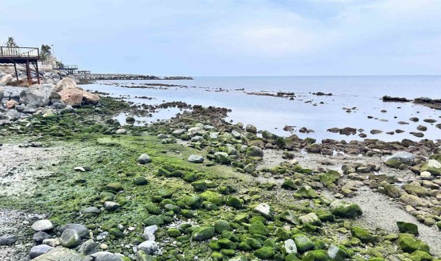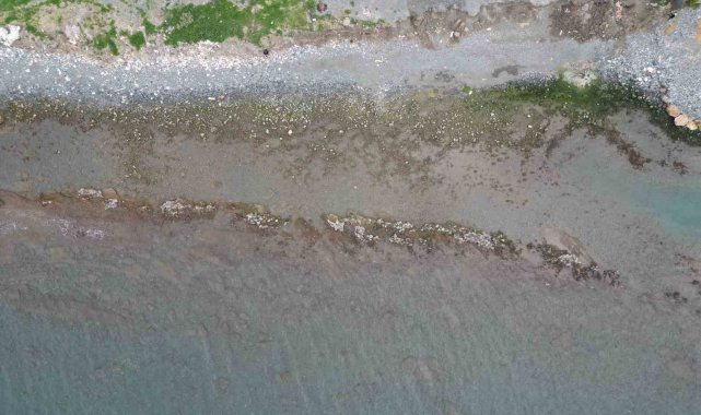 Hatay'ın Arsuz ilçesinde yaşanan 20 metre deniz çekilmesi dron ile havadan görüntülendi.