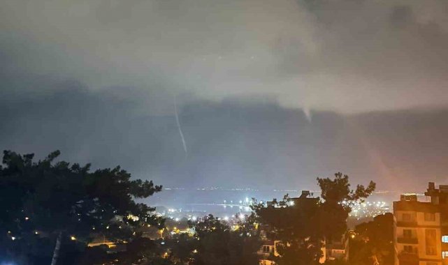 Hatay'da gece saatlerinde Akdeniz'de çıkan hortum, kameraya yansıdı.