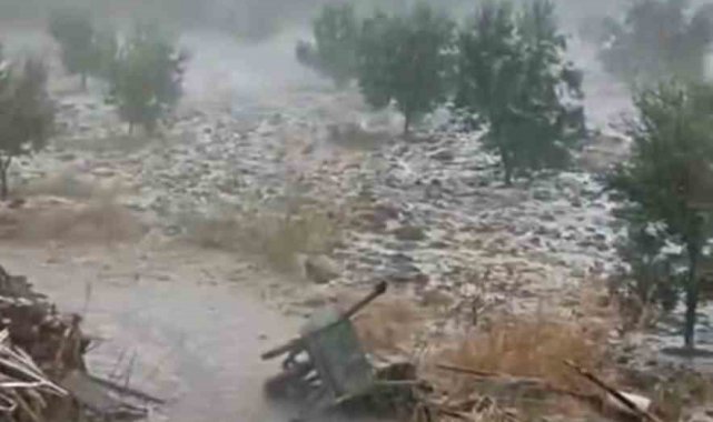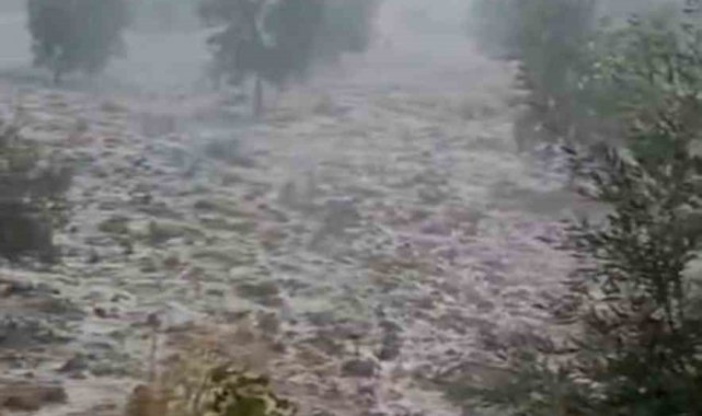 Hatay'da etkili olan dolu yağışı çevreyi beyaza bürüdü.