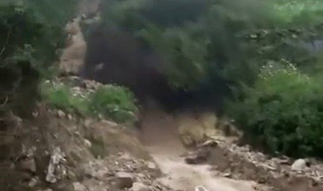Hatay'da etkili olan yoğun yağışla birlikte yaşanan heyelan mahalleler arası ulaşımı sağlayan yolu ulaşıma kapattı.