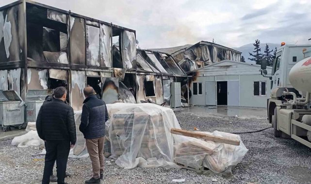 Hatay'da konteyner yemekhane alevlere teslim oldu