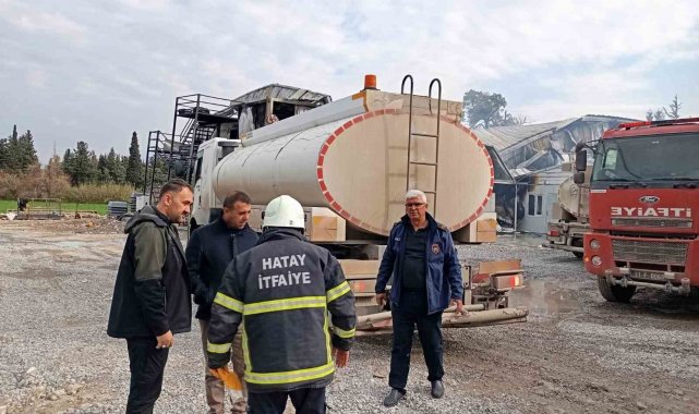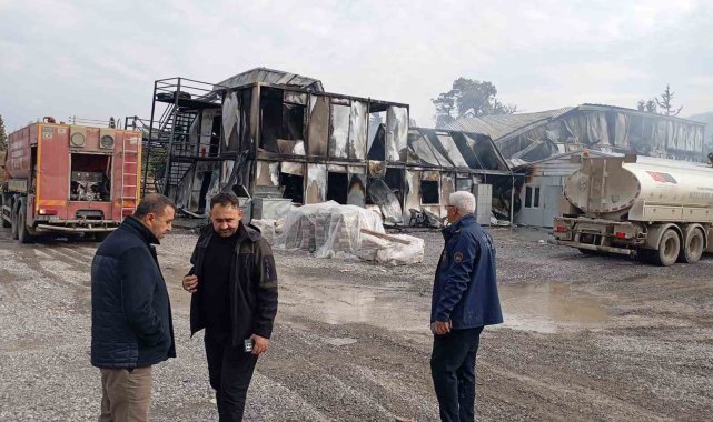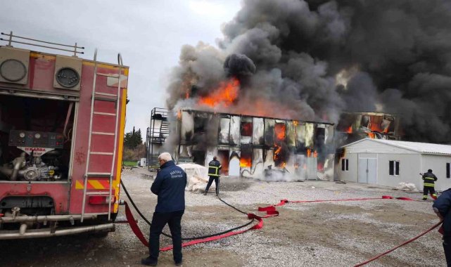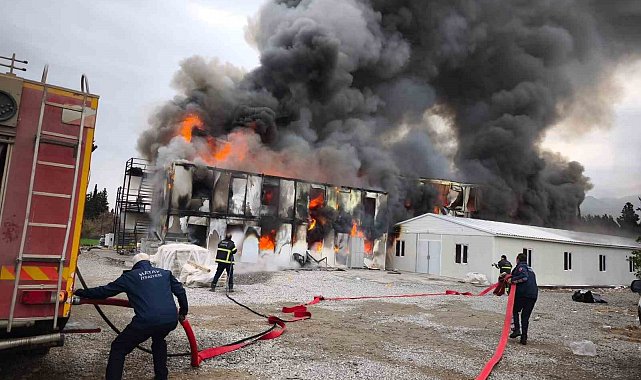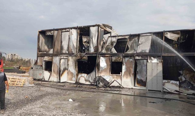 Hatay'da şantiye alanında bulunan konteyner yemekhane alevlere teslim oldu. Küle dönen yemekhanedeki alevler itfaiye ekiplerince söndürüldü.