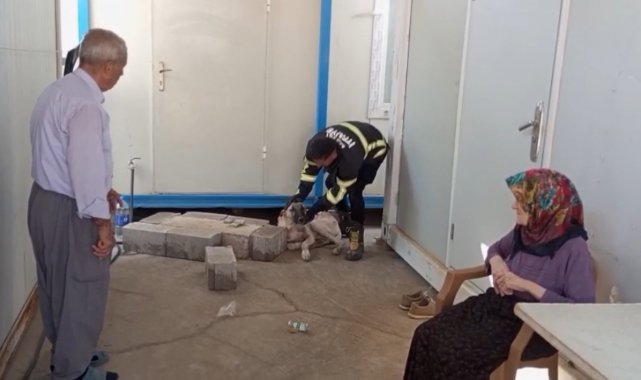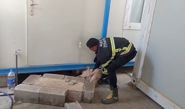 Hatay'da konteynerin altına sıkışarak mahsur kalan köpek, itfaiye ekiplerinin müdahalesiyle kurtarıldı.
