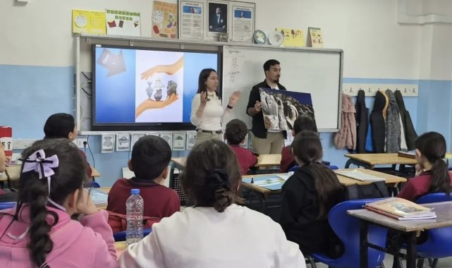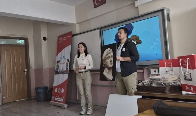 Müze araştırmacısı Kaan Çelik ve müze uzmanı Yağmur Toptaş eşliğinde gerçekleştirilen etkinlikte; arkeolojinin önemi, kültür varlıklarının korunması ve geçmişten geleceğe uzanan mirasın değeri öğrencilere aktarıldı.