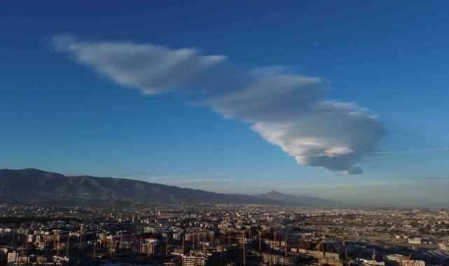Hatay'da sabah saatlerinden itibaren açık ve güneşli hava etkili oldu. Öğle saatleriyle birlikte hortuma benzerliğiyle dikkat çeken bir bulut kütlesi gökyüzünde ortaya çıktı. Kısa sürede vatandaşların ilgisini çeken bulutun, mercek bulutu olduğu anlaşıldı. Görsel şölen sunan mercek bulutunu fark eden vatandaşlar, o anları cep telefonlarıyla kaydetti.