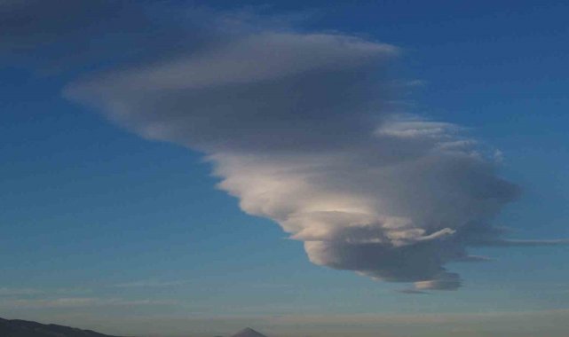 Hatay'da hortumu andıran görüntüsüyle dikkat çeken mercek bulutları görsel şölen sundu.
