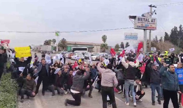 Hatay'da metal işçileri karayolunu trafiğe kapatarak eylemlerini sürdürdü