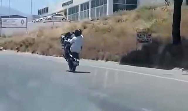 Olay, İskenderun-Antakya yolu üzerinde meydana geldi. Kimliği henüz belirlenemeyen motosiklet sürücüsü, trafikte seyir halindeyken ön tekeri havaya kaldırarak uzun süre bu şekilde ilerledi. Sürücünün bu tehlikeli gösterisi yolda seyreden başka bir araçtakiler tarafından cep telefonu kamerasıyla kaydedildi. Görüntülerde, motosikletlinin yoğun trafikte yaptığı hareketle hem kendi hayatını hem de çevredeki diğer sürücüleri riske attığı açıkça görülüyor. Trafik kurallarını hiçe sayan sürücünün kimliğinin tespit edilip, gerekli işlemlerin yapılması için yetkililerin çalışma başlattığı öğrenildi.