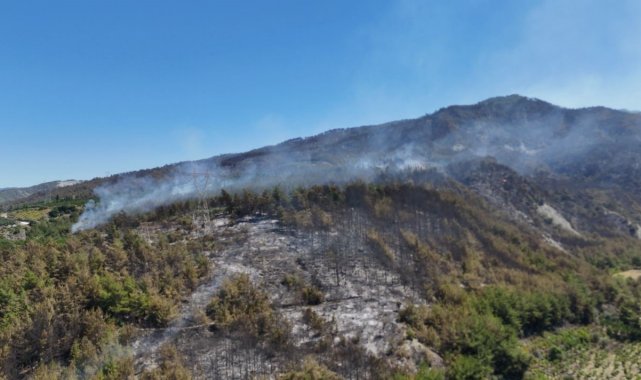 Hatay'da orman yangının etkili olduğu bölge havadan görüntülendi