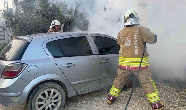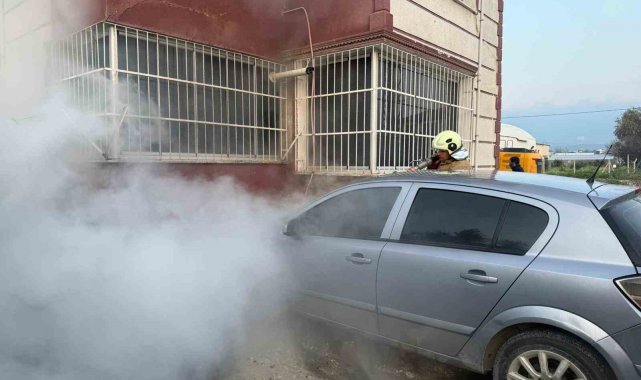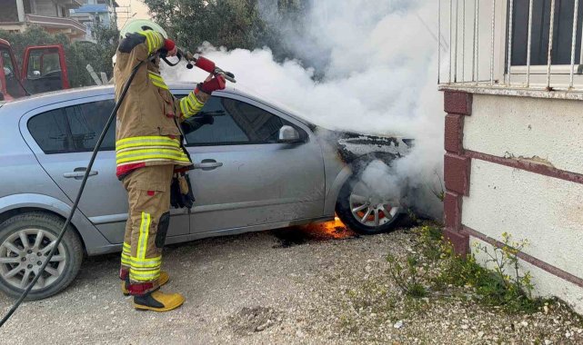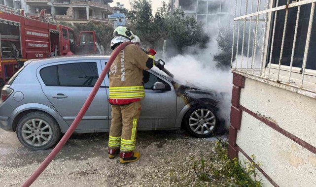 Hatay'da park halindeyken alevlere teslim olan otomobilde çıkan yangın söndürüldü.