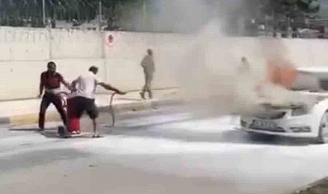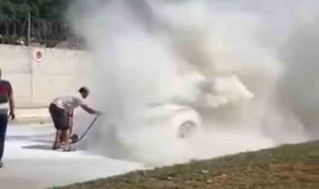 Hatay'ın İskenderun ilçesinde seyir halindeyken alev alan otomobilde yangın çıktı. Çevredeki vatandaşların müdahalesiyle alevler kısa sürede kontrol altına alındı.