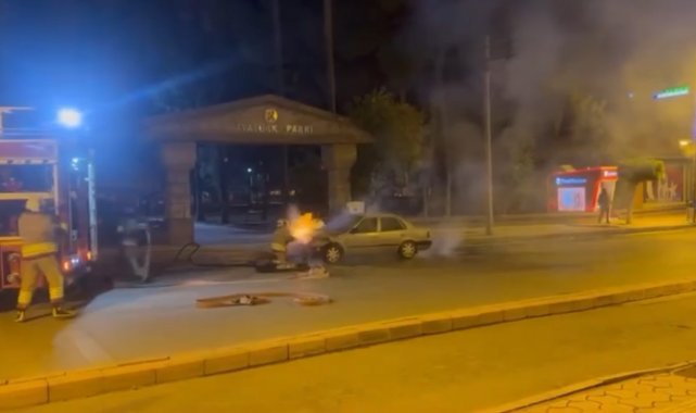 Hatay'da seyir halindeki otomobil alevlere teslim oldu
