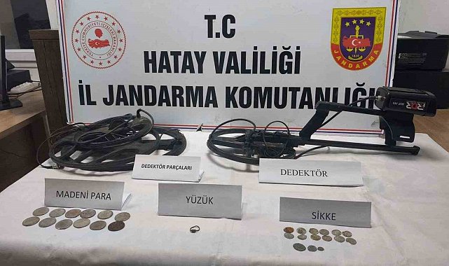 Hatay İl Jandarma Komutanlığı ekiplerince; 6 Mart tarihinde Kırıkhan ilçesi Alsancak Mahallesi'nde şüpheli şahsın ikametinde 2863 Sayılı Kültür ve Tabiat Varlıklarını Koruma Kanunu'na muhalefet suçuna ilişkin olarak arama yapıldı. Yapılan adli arama neticesinde; 1 adet dedektör, 3 Adet dedektör aparatı, 15 adet sikke, 12 adet antika madeni para ve 1 adet yüzük ele geçirildi. şüpheli şahıs hakkında gerekli yasal işlemlere başlatıldı.