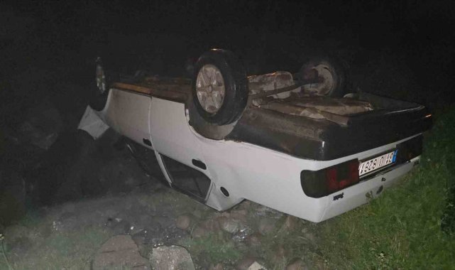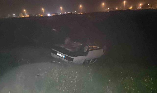 Hatay'da takla atarak tarlaya uçan ve ters dönen aracın sürücüsü yaralandı.
