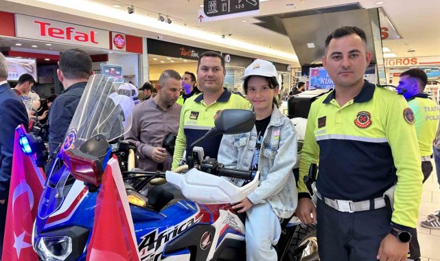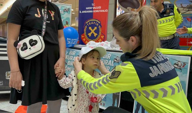 Hatay'ın İskenderun ilçesinde bir alışveriş merkezinde çocuklara ve ailelerine trafik eğitimi verildi.