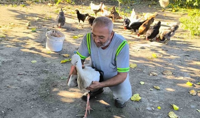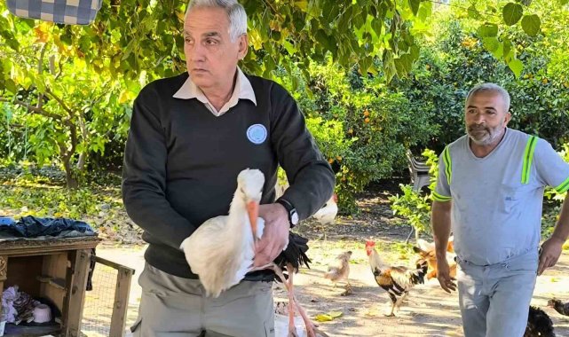 Dörtyol ilçesi Numuneevler Mahallesi'nde yaşayan Yusuf Poyraz, evinin bahçesinde bulduğu leyleğin uçamadığını fark ederek kümeste beslemeye başladı. Leyleği balıkla besleyen Poyraz, kuşu Doğa Koruma ve Milli Parklar Şube Müdürlüğü ekiplerine teslim etti. Ekipler, ilk kontrollerini yaptıkları leyleği rehabilitasyon merkezinde tedavi altına aldı.