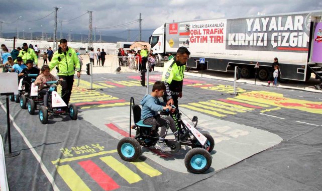 Hatay'da depremden etkilenen çocuklar, Emniyet Genel Müdürlüğünün Mobil Trafik Eğitim Tırı'nda hem eğlendi hem öğrendi.
