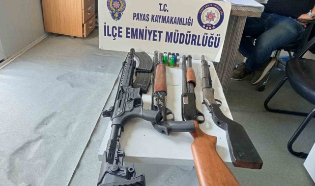 Hatay'ın Payas ilçesinde bir ikamette yapılan baskında 4 adet ruhsatsız tüfek, şarjör ve mermi ele geçirildi.