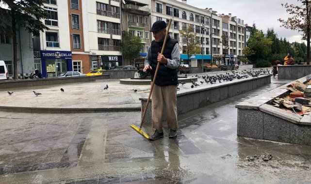 Hatboyu Caddesi'ni görevliler değil 63 yaşındaki vatandaş temizledi