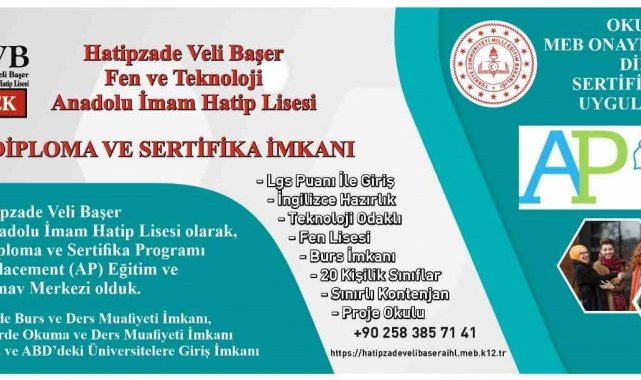 Denizli'de fen ve teknoloji temelli eğitim yaklaşımıyla öne çıkan Hatipzade Veli Başer Fen ve Teknoloji Anadolu İmam Hatip Lisesi, Millî Eğitim Bakanlığı onayıyla Advanced Placement (AP) programını uygulama ve SAT Sınav Merkezi olma yetkisi kazandı.