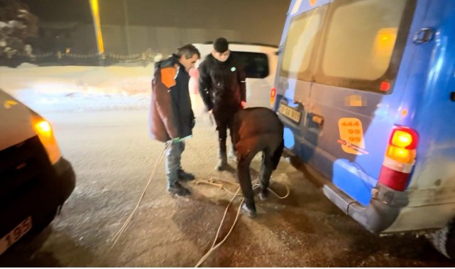Sürücü Onaylı'nın çaresiz kaldığı anlarda çevredeki vatandaşlar yardıma koştu. Dondurucu soğuğa aldırış etmeyen vatandaşlar, aracı imece usulüyle metrelerce iterek yol kenarına çekmeye çalıştı. Çabalar sonuç vermeyince, araç başka bir vasıtaya halatla bağlanarak çekici yardımıyla sanayiye götürüldü.