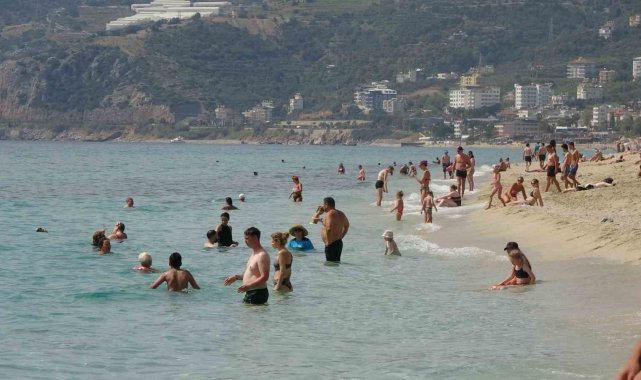 Hava sıcaklığının 24 dereceye yükseldiği Alanya'da sahiller doldu
