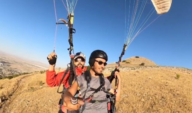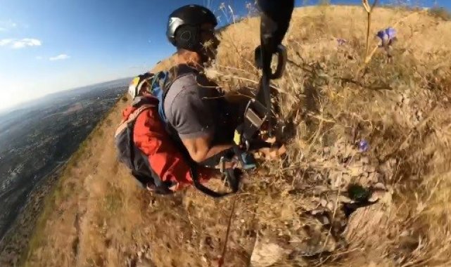 Kayseri'de havadaki paraşütün kumanda ipi düğümlenince dağ yamacına zorunlu iniş yaptı. Pilotun sakinliği sayesinde faciadan dönülürken, yaralananın olmadığı kaza kameraya yansıdı.