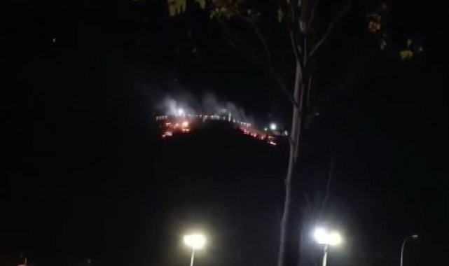 Nevşehir'de gösteri havuzu açılışında atılan havai fişekler yangına neden oldu.