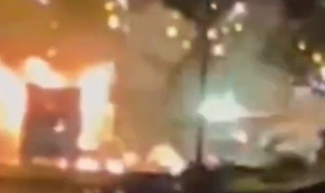 Van'ın İpekyolu ilçesinde bir grup tarafından düzenlenen izinsiz gösterilerde atılan havai fişeğin isabet ettiği çöp toplama kamyonu küle döndü.