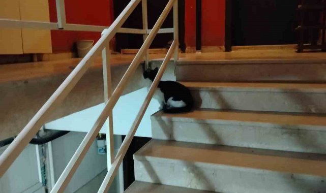 Çorum'un Osmancık ilçesinde 5 katlı apartmanın havalandırma boşluğuna düşen kedi, itfaiye ekipleri tarafından kurtarıldı.
