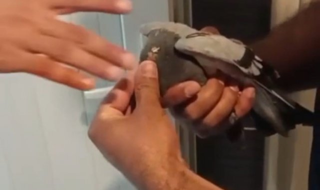 Havalandırma boşluğunda mahsur kalan güvercin kurtarıldı