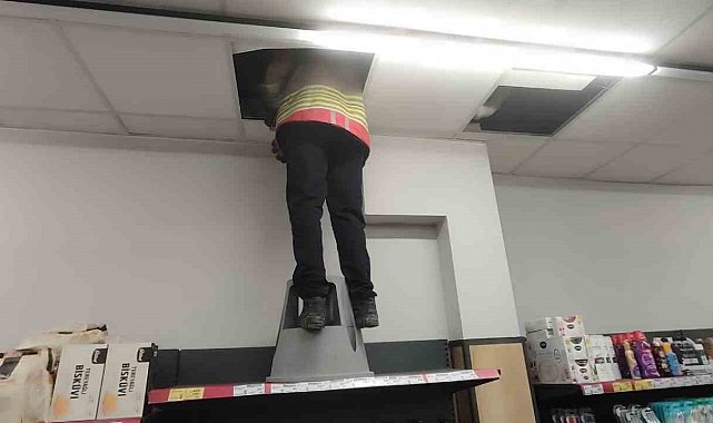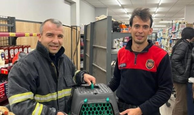 Hatay'da marketin havalandırma boşluğunda mahsur kalan kedi itfaiye ekiplerince kurtarıldı.