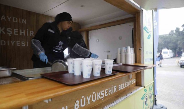 Aydın'da havaların soğumasıyla birlikte Aydın Büyükşehir Belediyesi ekipleri, sıcak çorba ikramına başladı.