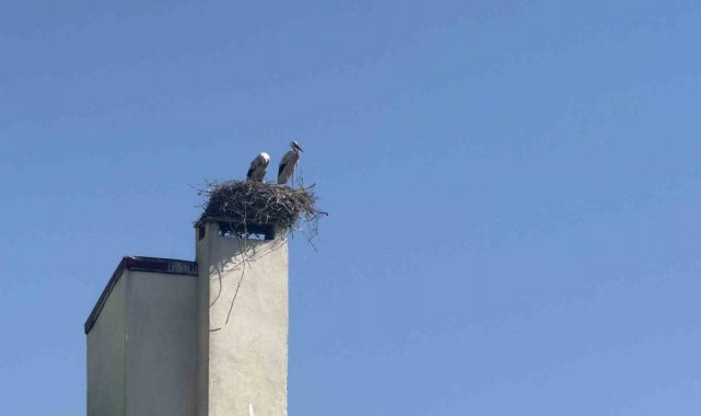 Hava sıcaklığının arttığı Iğdır'da leylekler yuvalarına geri dönmeye başladı.
