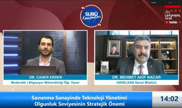 Sakarya Uygulamalı Bilimler Üniversitesi (SUBÜ) tarafından düzenlenen SUBÜ Konuşmaları'nın 104'üncü konuşmacısı, 'Savunma Sanayinde Teknoloji Yönetimi Olgunluk Seviyesinin Stratejik Önemi' konulu söyleşiyle Hava Elektronik Sanayi (HAVELSAN) Genel Müdürü Dr. Mehmet Akif Nacar oldu. Moderatörlüğünü SUBÜ Bilgisayar Mühendisliği Öğretim Üyesi Doç. Dr. Caner Erden'in üstlendiği söyleşide; savunma sanayinde teknoloji yönetiminin önemi, HAVELSAN'ın teknolojisi ve teknoloji yönetimine bakışı gibi konular üzerine konuşuldu. Teknoloji yönetiminin yalnızca teknik bir kavram değil, kurumsal refleks haline gelmesi gereken stratejik bir yetkinlik olduğunu vurgulayan Nacar, "Teknoloji Yönetimi ve Teknoloji Yönetiminin Olgunluk Seviyesi savunma sanayimiz için çok kritik ve derin etkileri olan bir konudur. Bunu yalnızca teknik bir ölçüm olarak düşünmeyin; sürdürülebilir başarı için vazgeçilmez bir stratejik kabiliyettir. HAVELSAN olarak yalnızca teknoloji geliştirmiyor, aynı zamanda geleceği planlıyor ve kaynaklarımızı stratejik hedefler doğrultusunda yönetiyoruz. Problemleri bilimsel temelli mühendislik modelleriyle ele alıyoruz. Teknoloji yönetimi; geliştirme, planlama, uygulama, organize etme, koordine etme ve denetleme süreçlerinin bütününü kapsar" dedi.