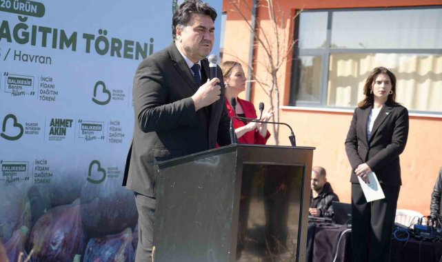Törende konuşan Balıkesir Büyükşehir Belediye Başkanı Ahmet Akın, Havran'ın incir üretimi açısından önemli bir potansiyele sahip olduğunu belirterek, "Mandalinası ve özellikle Havran siyah inciri kalitesi ve aromasıyla çok özel bir yere sahip. Bunun yanı sıra sarı dizilik ve kara dizilik gibi yerel incir çeşitleriyle de ön plana çıkmış bir ilçemiz. Bugün gerçekleştirdiğimiz kırsal kalkınmayı destekleme programı kapsamında incir fidanlarımızı yüzde yüz hibe desteğiyle çiftçilerimize teslim ediyoruz" dedi.