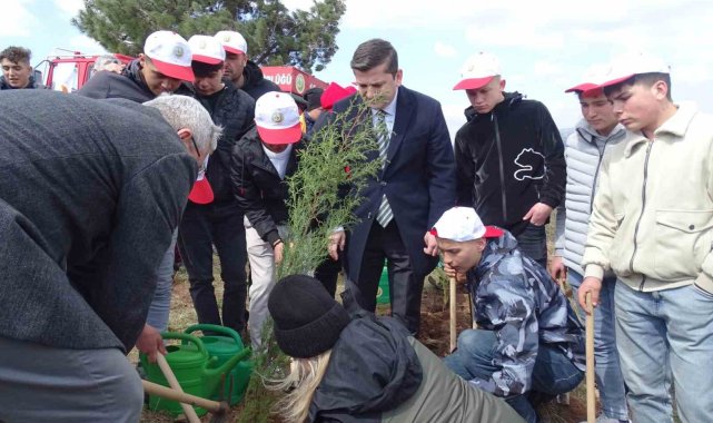 Havran'da öğrenciler fidanları toprakla buluşturdu