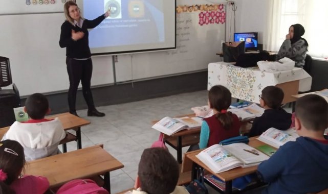 Balıkesir'in Havran ilçesine bağlı Kocadağ Mahallesi'nde bulunan Damlalar İlkokulu öğrencileri, iyi tarım uygulamaları ve organik tarım konusunda bilgilendirildi.